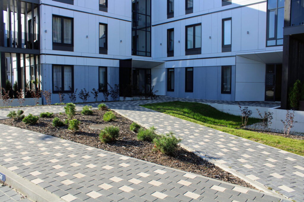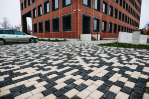 Bruģakmens malas ir nedaudz slīpas, kas pēc ieklāšanas starp akmeņiem veido pamanāmas V veida gropes. Klasisks, strukturēts un vizuāli skaidri definēts raksts. Pateicoties slīpajām malām, bruģis ir izturīgāks pret malu izlūšanu (robiem) pie lielām slodzēm un pie bruģa ieklāšanas. Būs ideāli piemērots brauktuvēm, industriālām zonām un vietām ar lielu transporta plūsmu.