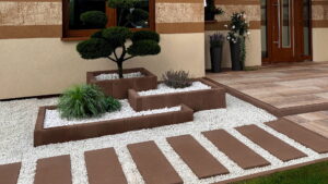 Ar stabiņiem var stiprināt stāvas kāpnes. Dažādojot augstumus, līmeņot grunti un veidot daudzlīmeņu puķu dobes ar visplašāko dizainu. Kombinācijā ar bruģi, radīt īpašas terases vai terašu kaskādes.